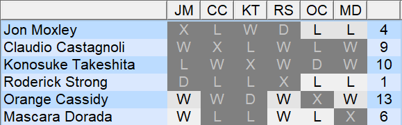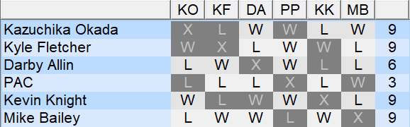Okada only beat Mike Bailey within the tied group. His other two wins were outside the group.